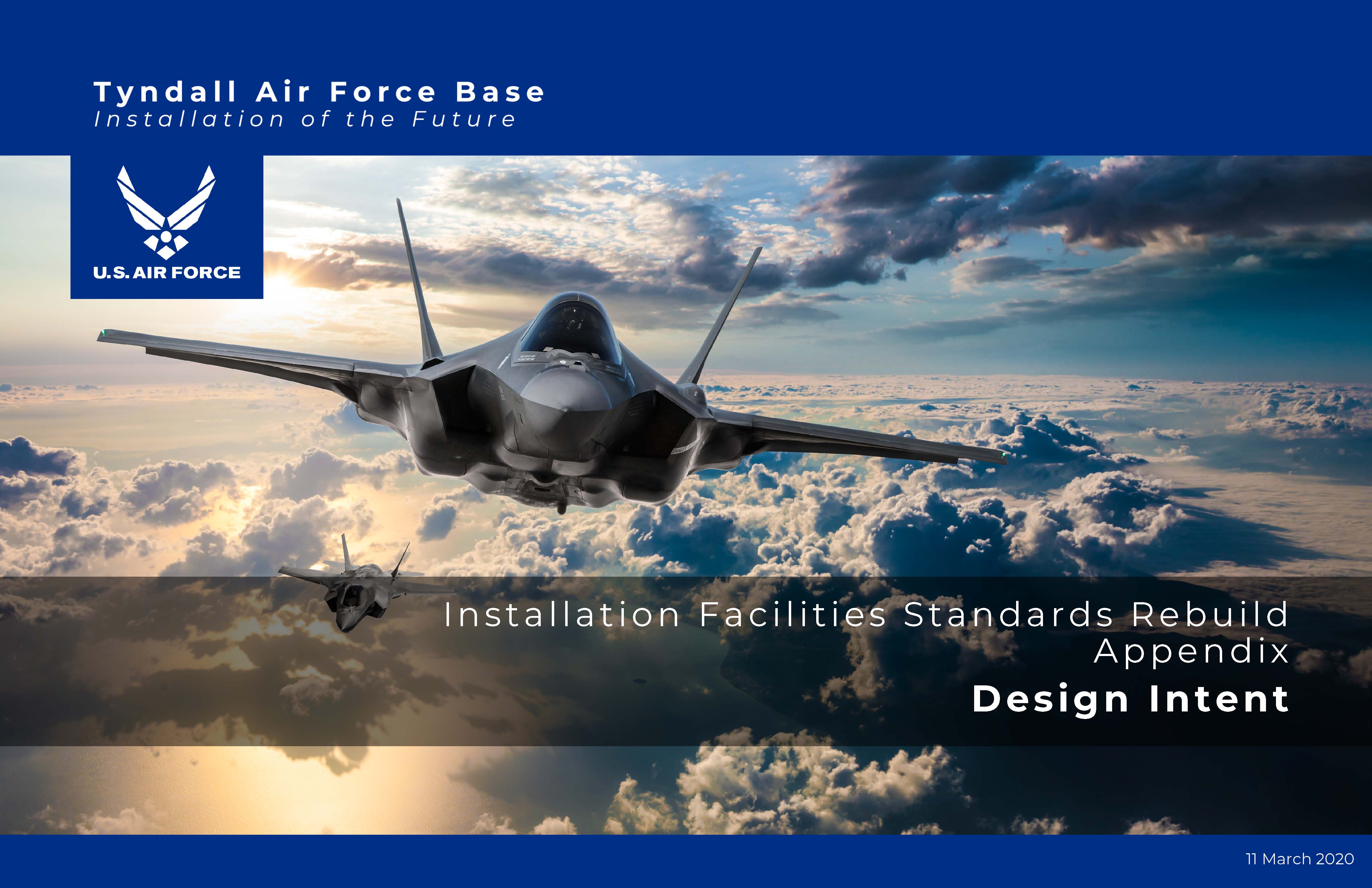 The Design Intent included in the Tyndall Air Force Base (AFB) Installation Facilities Standards (IFS) defines the Architectural Image and Character principles that will guide Tyndall AFB’s efforts to become the Installation of the Future.